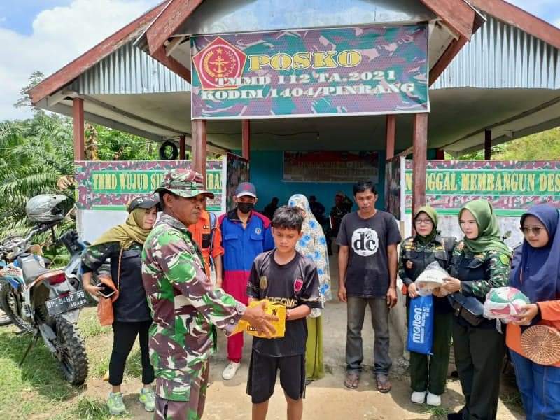 Sulawesi – Maspolin.id //  Tidak hanya melaksanakan program fisik dan non fisik TMMD Ke 112 Kodim 1404/Pinrang, Satgas TMMD juga memberikan bantuan alat olahraga berupa bola dan net voli serta bola takraw dan net takraw kepada warga Dusun Padang Loang Desa Watang Kassa Kecamatan Batulappa Kabupaten Pinrang, (13/10/2021).
