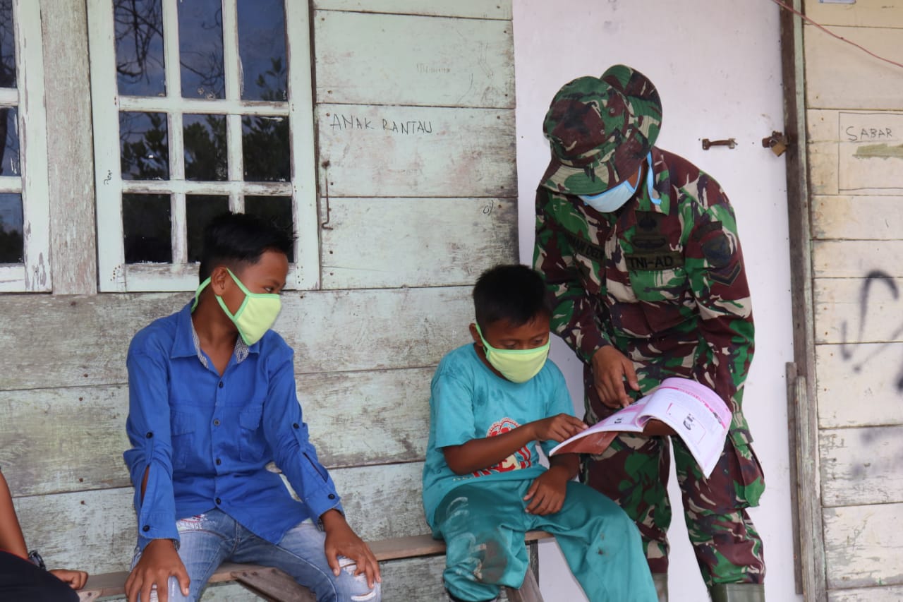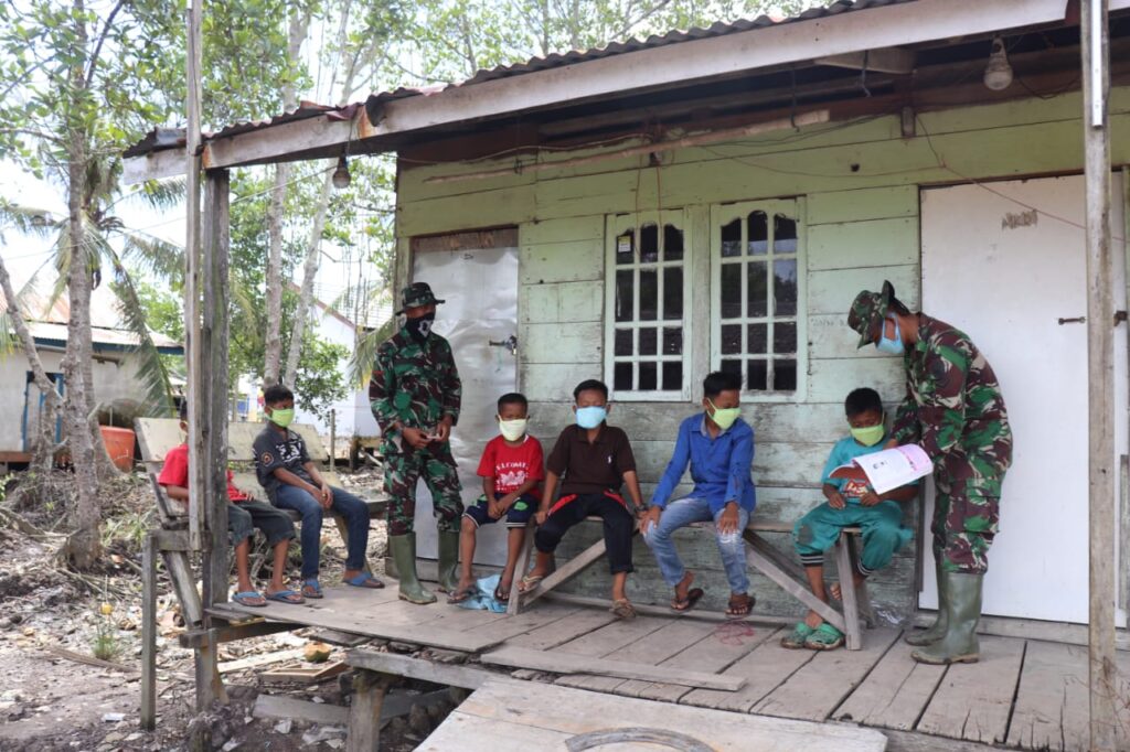 Satgas TMMD Kodim 0419/Tanjab Bantu Anak – Anak Labuhan Pering Belajar di Rumah