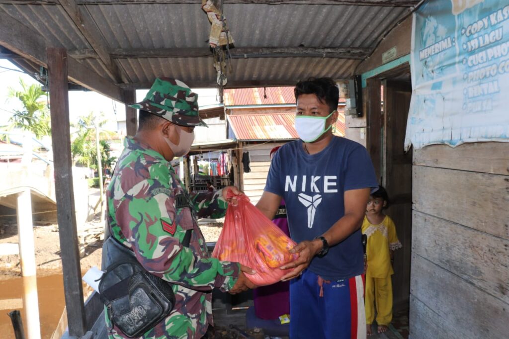 Jambi, Maspolin.id—Satuan Tugas (Satgas) TNI Manunggal Membangun Desa (TMMD) ke 108 Kodim 0419/Tanjab kembali mendisdribusikan bantuan kemanusiaan berupa paket sembako untuk warga terdampak pandemi Covid-19.