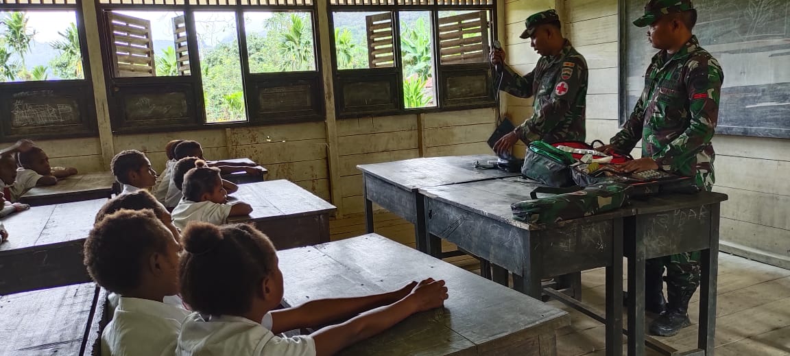 Satgas Yonif 126/KC Berikan Pembekalan Ilmu Kesehatan Kepada Siswa-Siswi Perbatasan Papua