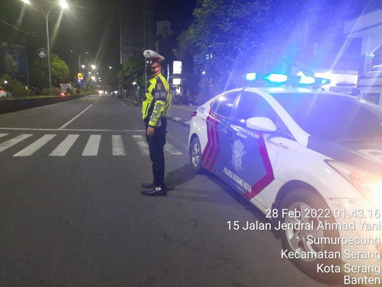 Banten – Maspolin.id // Personel Satlantas Polresta Serkot Polda Banten gelar patroli malam cegah Balap liar di sekitar Jalan Ahamad Yani – Sumurpecung, dan Ciceri Kota Serang. pada Senin (28/02) pukul 01:00 Wib