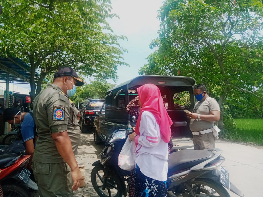 MASPOLIN || Bojonegoro – Satpol PP Bojonegoro bersama Koramil dan Polsek Ngasem menggelar kegiatan Posdu Protokol Kesehatan Covid-19 di Pasar Desa Ngasem dan Pasar hewan (kambing ) Desa Ngasem, Kecamatan Ngasem, Pada Hari Selasa ( 26/1/2021)