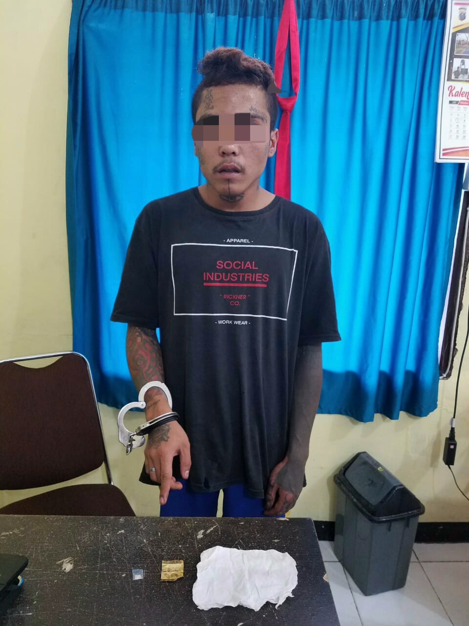 Adapaun, Pada saat penangkapan dilakukan terhadap pelaku, petugas Satres-Narkoba mengamankan 1(satu) lembar kertas timah rokok, berisi 1(satu) plastik warna bening berisi NARKOTIKA jenis sabu. Laki-laki tersebut mengakui bahwa benar narkotika jenis sabu tersebut didapati diduga miliknya.