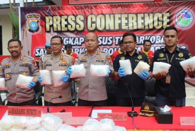 Kapolresta Barelang Kombes Pol Hengki S.I.K., M.H. menyampaikan hasil penyelidikan yang dilakukan selama lebih dari 2 bulan lamanya berhasil mengungkap jaringan ini, tepat nya pada hari Selasa tanggal (6/8) pukul 05.00 wib di sekitar Pulau Kasem, Telaga Punggur, Kota Batam. Telah diamankan diduga pelaku membawa Narkotika jenis sabu dengan speed boat inisial TI, selanjutnya dilakukan penggeledahan dan ditemukan Narkotika jenis Sabu yang disimpan didalam 1 (satu) buah tas koper merk polo villa warna coklat yang berisikan :
