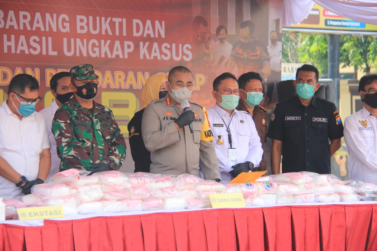 Setidaknya ada totoal 79,5 kilogram sabu, 37,71 kilogram ganja, 16.932 pil ekstasi, 17.758 pil happy five dan 157.827 butir pil doble L.
