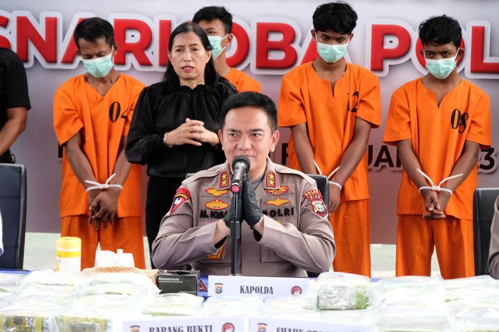 ”Ancaman hukumannya adalah pidana mati dan atau seumur hidup ataupun paling lama 20 tahun penjara,” kata Kombes Narto yang langsung di-”amin”-kan Kombes Pol Yos Guntur, Direktur Diresnarkoba Polda Riau. * (Denny W)