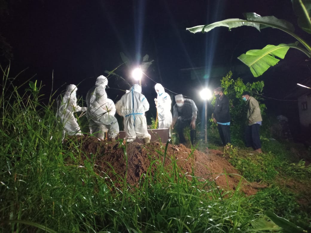 Diterangkan Babinsa, setibanya di desa tempat tinggalnya, jenazah langsung dikebumikan di TPU setempat dan pelaksanaan pemakaman di laksanakan dengan SOP pemakaman terhadap pasien Covid-19 seperti menggunakan Pakaian dan alat pelindung diri (APD) yang diberikan dari team kesehatan Kecamatan Dayeuhluhur kepada petugas pemakaman.