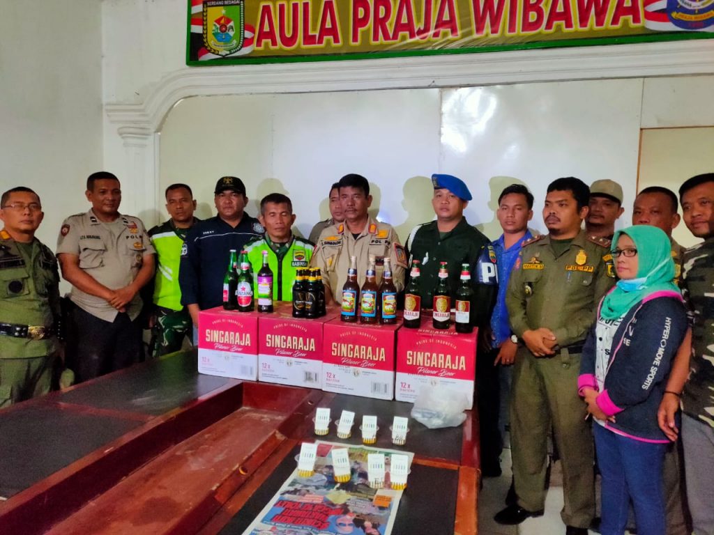 Tim Gabungan juga berhasil mengamankan barang bukti minuman keras yang didapatkan disebuah kafe remang- remang terdiri jenis minuman singaraja sebanyak 8 kotak terdiri 96 botol, Minuman Kamput sebanyak 3 botol, Anggur merah 1 botol, Bir Bintang 3 botol, Bir Guines 4 botol.