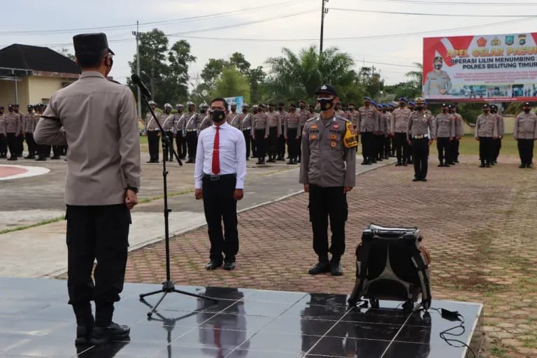 BELTIM – Maspolin.id// Kapolres Belitung Timur AKBP Taufik Noor Isya, SIK mengambil apel pimpinan yang dilaksanakan dihalaman depan Polres Belitung Timur, Senin (7/2/2022).