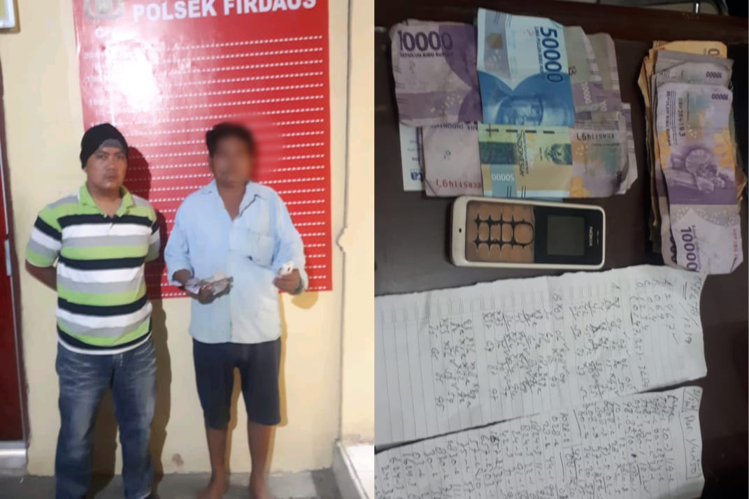 hasil rekapan Judi KIM kepada seseorang bermarga Nainggolan warga Desa Sei Belutu Kec. Sei Bamban. selain menangkap Poler, Timsus Polsek Firdaus juga berhasil mengamankan barang bukti antara lain 1 (satu) unit Handphone merk Nokia warna putih, 2 (dua) Lembar kertas putih untuk menulis nomor pasangan atau tebakan, Uang tunai senilai Rp.299.000,.
