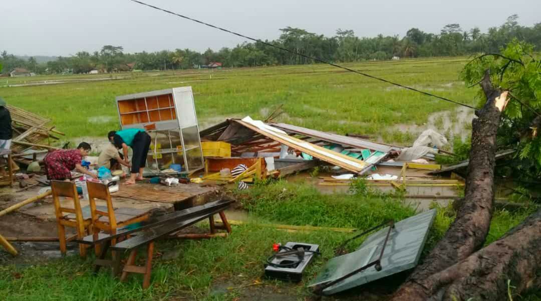 Hal yang sama juga menimpa Suwardi, warga setempat. Rumahnya tertimpa pohon petai di atap dapur, serta pohon bambu yang roboh hingga menutup akses jalan di Desa Sokawera tersebut.