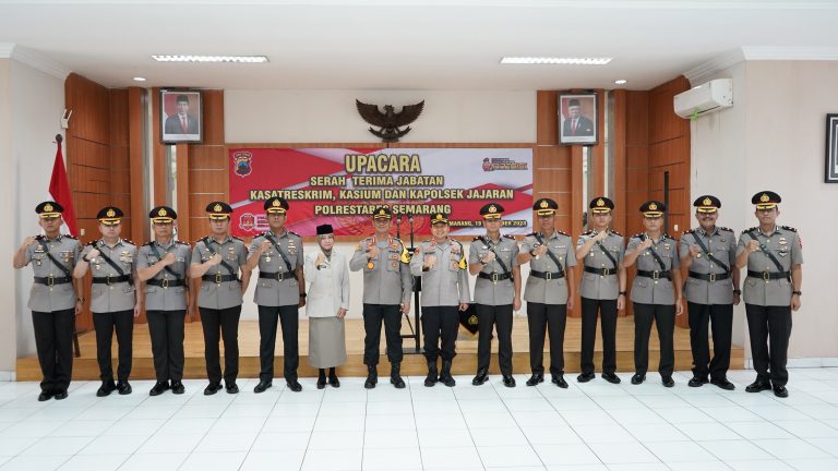 SEMARANG – Maspolin.id|| Polrestabes Semarang dipenuhi semangat dan harapan baru dengan digelarnya Serah Terima Jabatan (Sertijab) beberapa pejabat utama. Pejabat dan anggota kepolisian berkumpul dalam suasana yang penuh haru untuk menyaksikan pergantian kepemimpinan PJU dan Kapolsek jajaran Polrestabes Semarang, Jumat (22/12/2023).