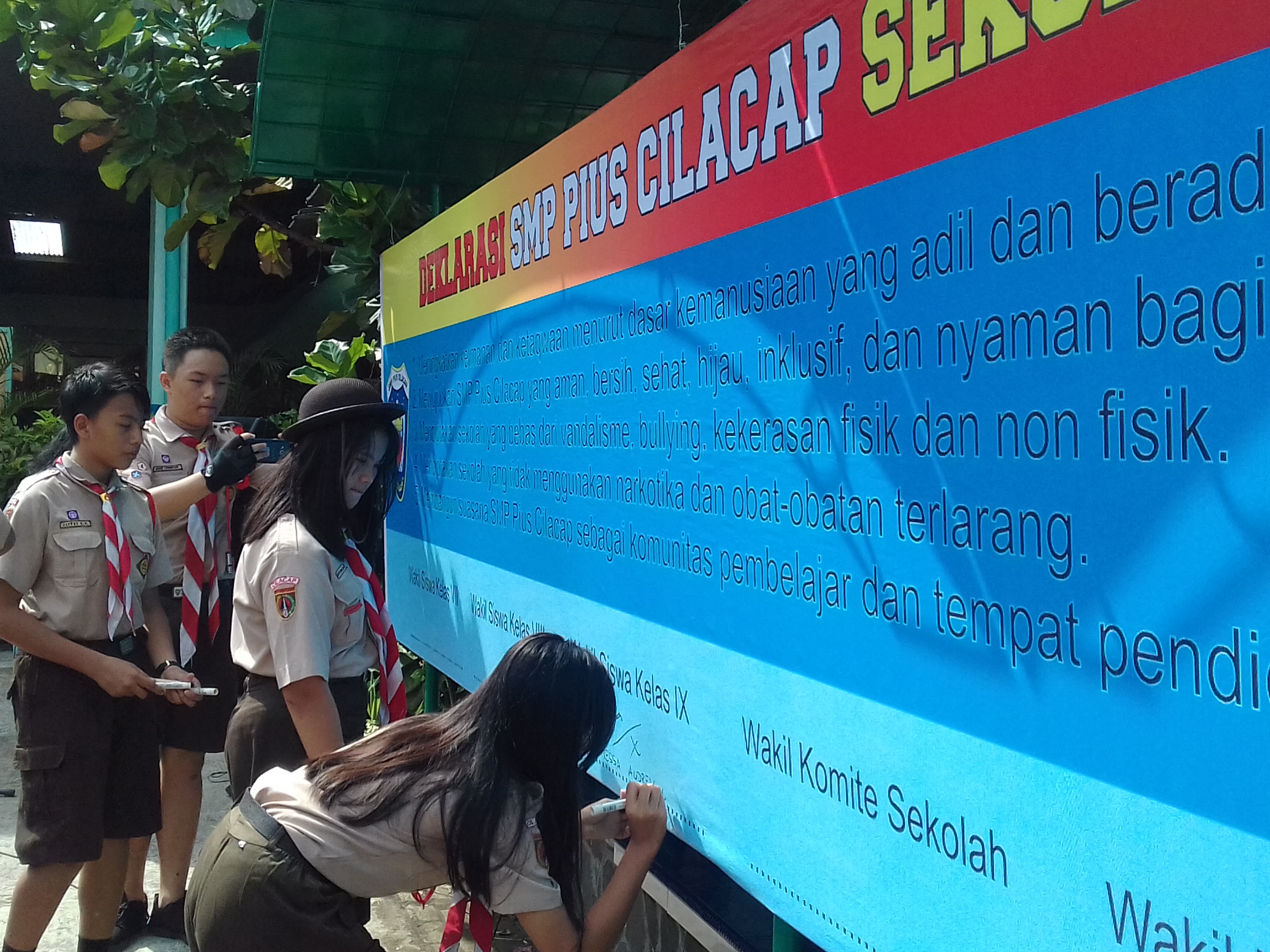 SMP Pius Cilacap juga gencar melakukan sosialisasi guna menekan angka tindak kekerasan atau bullying, khususnya bagi anak-anak di lingkungan sekolah.