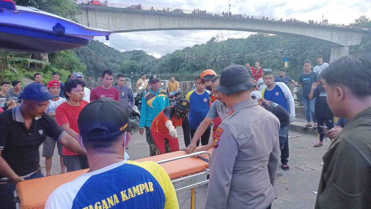 Lalu para saksi langsung meminta bantuan kepada warga sekitarnya, sekira pikul 14.00 WIB dilakukan pencarian oleh warga setempat di bantu anggota Polsek Bangkinang Barat dengan menggunakan perahu dan mengunakan jaring ikan.