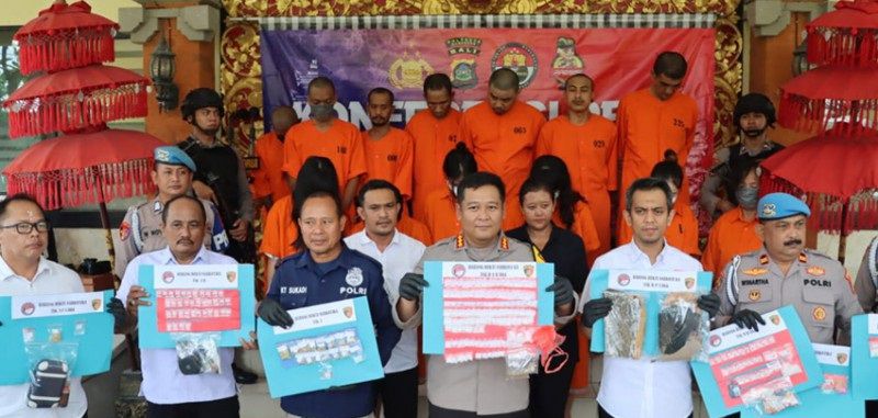“Para tersangka ini semuanya adalah pengedar. Dari puluhan tersangka ada dua residivis yaitu Dolly. Tersangka ini dua kali masuk bui yaitu 2016 dan 2022. Selain itu tersangka Samuel Kamau pernah dibui tahun 2018,” ungkap Kapolresta Denpasar Kombes Pol Wisnu Prabowo saat gelar jumpa pers di Mapolresta Denpasar, pada Senin (6/5) siang.