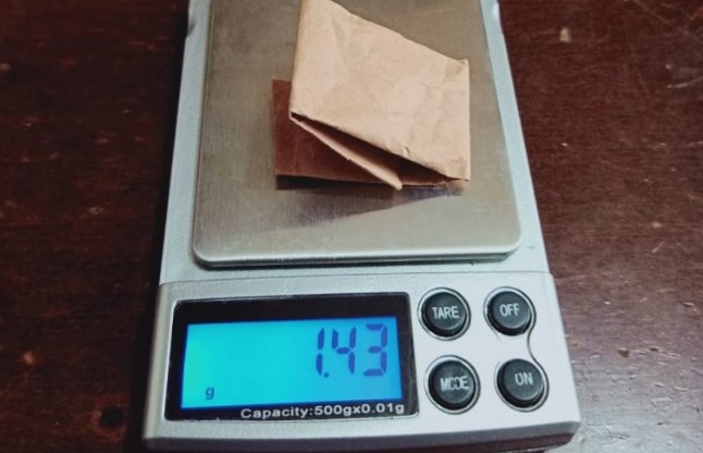 “Ditemukan 1 satu bungkus kertas warna coklat berisikan narkotika jenis tanaman ganja yang disimpan tersangka di kaus kaki yang dipakainya,” ujar Kompol Erna.