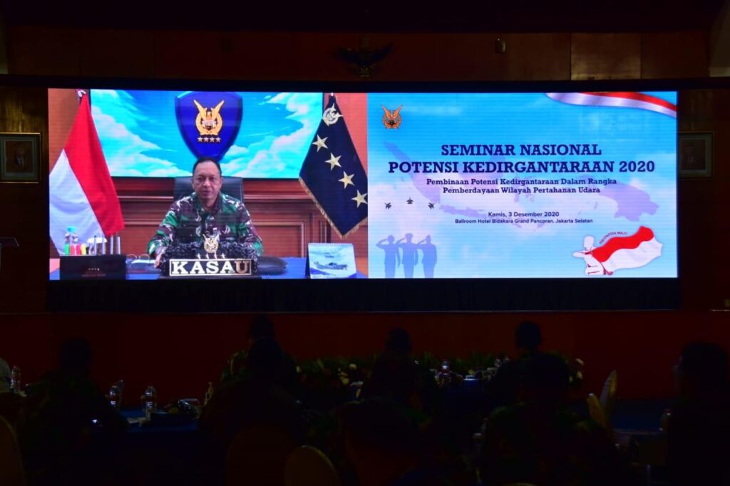 Penegasan tersebut disampaikan Kasau ketika menjadi Keynote Speaker dalam Seminar Nasional Pusat Potensi Kedirgantaraan (Puspotdirga) melalui Virtual dari Mabesau Cilangkap, Jakarta Timur, Kamis (3/12/2020).