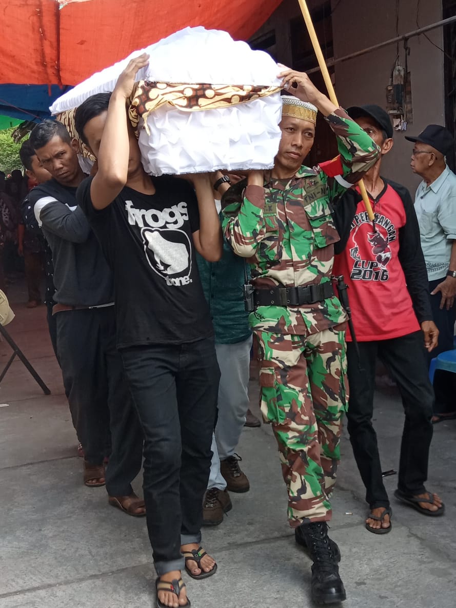 Surakarta,Maspolin.id – Serda Hidayat Babinsa Kelurahan Sewu Koramil 04/Jebres Kodim 0735/Surakarta ikuti Prosesi Pemakaman Almarhumah Sumiyem 77 th, salah satu warga binaan yang beralamat di Kp.Sewu Rt.03 / Rw.04 Jebres Surakarta (14/6/2019).