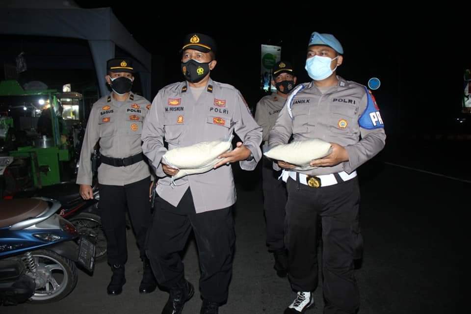 Secara serentak diseluruh Jajaran Polda dan Polres Se-Indonesia, melakukan Apel Patroli Skala Besar pukul 21.00 Wib, Jumat (23/07/2021). Dipimpin Kabagops Polres Jember Kompol. Agus Supariono, S.S, Ratusan personil gabungan TNI Polri dan Sat Pol PP diterjunkan membagikan 500 paket sembako kepada pedagang kali lima yang tersebar di wilayah Kota Jember.