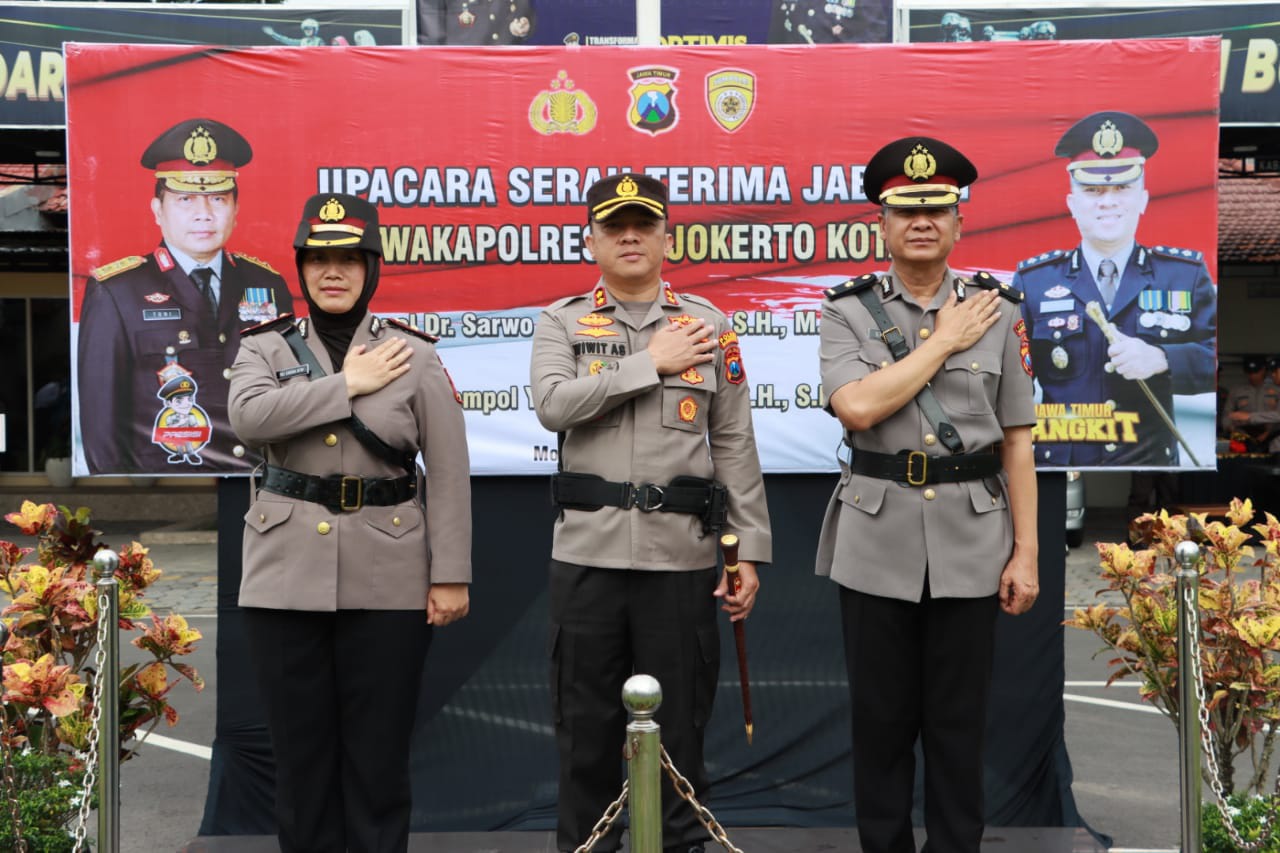 Mojokerto – Maspolin.id|| Menindak lanjuti Surat Telegram Kapolda Jatim Nomor : ST/101/I/KEP./2023 tanggal 20 Januari 2023 tentang mutasi Perwira Polri di lingkungan Polda Jatim, Kapolresta Mojokerto AKBP Wiwit Adisatria S.H S.I.K M.T, memimpin kegiatan Upacara Serah Terima Jabatan Wakapolresta Mojokerto.