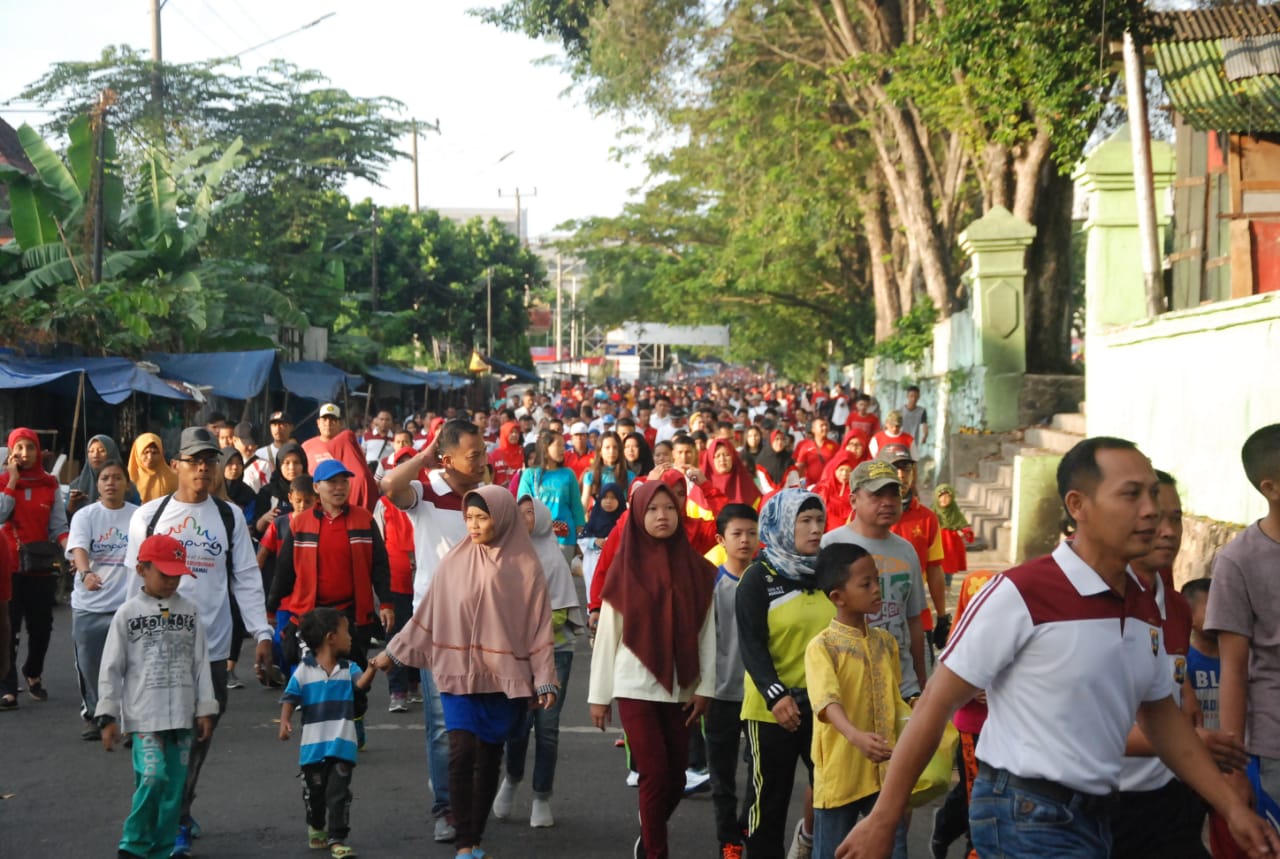 Lampung,Maspolin.id – Kota Bandar Lampung. Ribuan masyarakat Kota Bandar Lampung mengikuti jalan santai dan senam bersama yang digelar Polda Lampung, Minggu (23/06/2019).