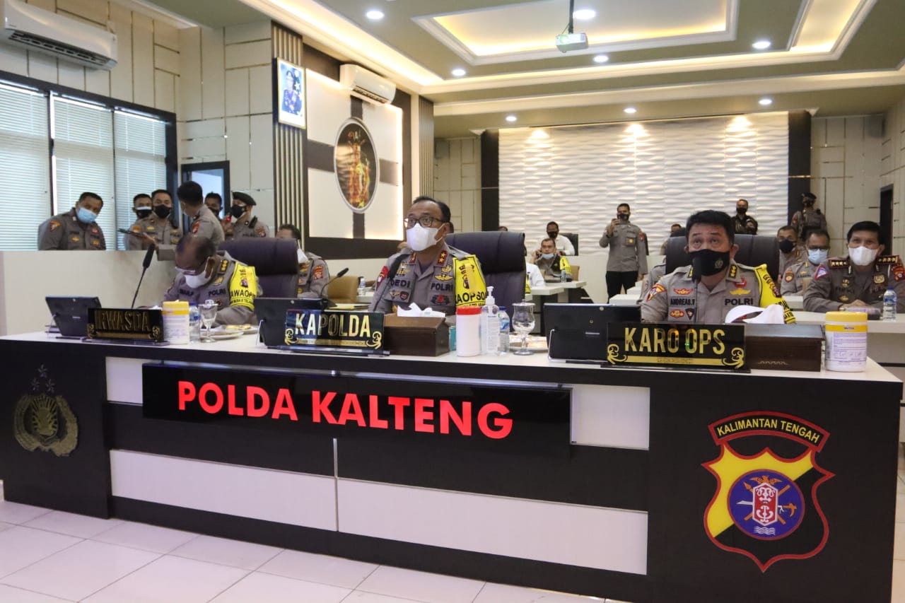MASPOLIN || Palangka Raya (Kalteng) – Kapolda Kalteng Irjen Pol Dr. Dedi Prasetyo pimpin anev terkait pelaksanaan Operasi Aman Nusa (OAN) II secara virtual, bertempat di Aula Mandau Telabang Mapolda Kalteng, Senin (01/03/2021).