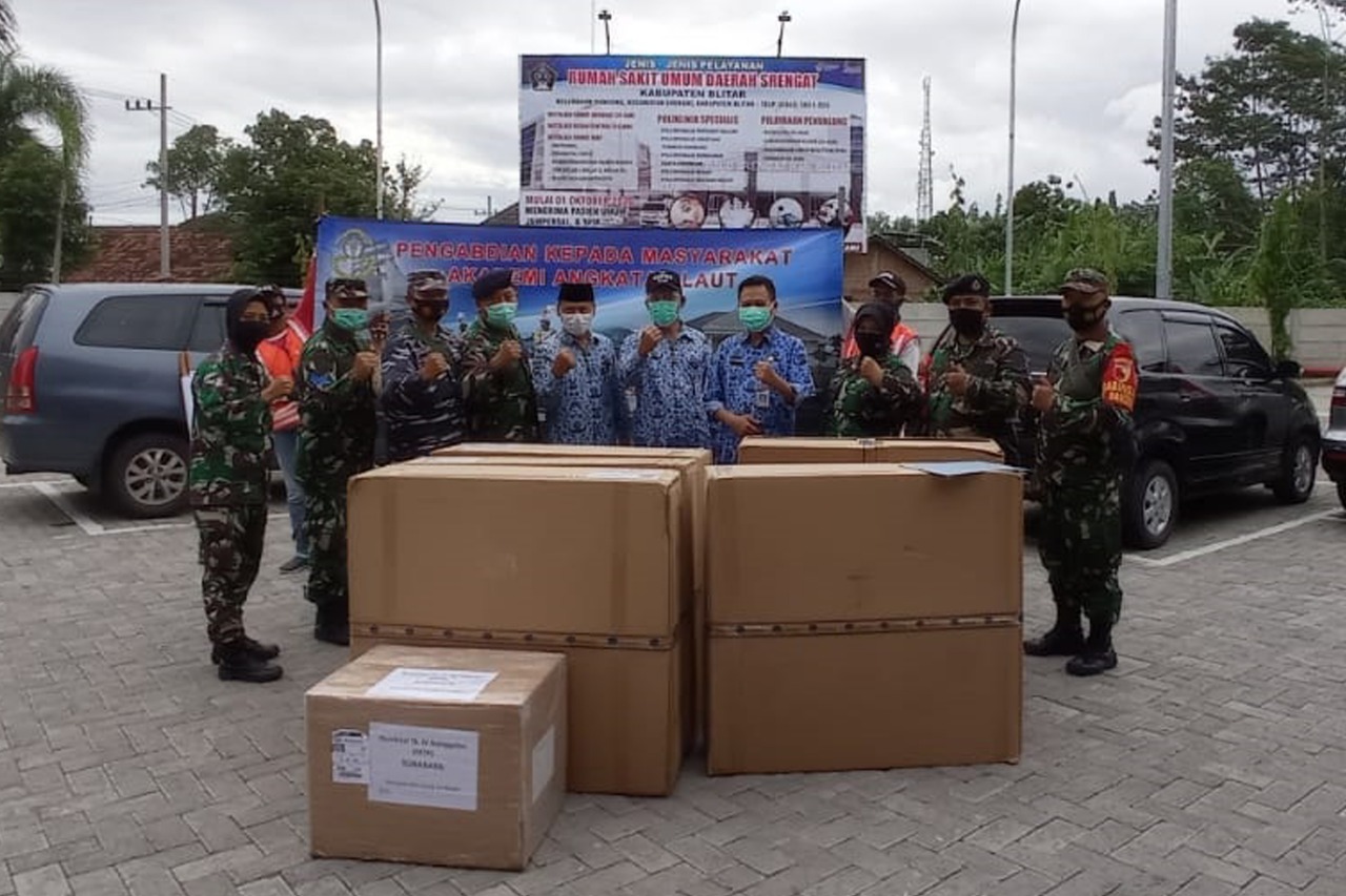 Penyerahan wilayah Blitar dilaksanakan di empat lokasi diantaranya Dinas Kesehatan Kabupaten Blitar, RSU.Srengat Blitar dan Puskesmas Kabupaten Blitar sebanyak 1.700 set APD Covid-19 dan 3.900 alat Rapid test.