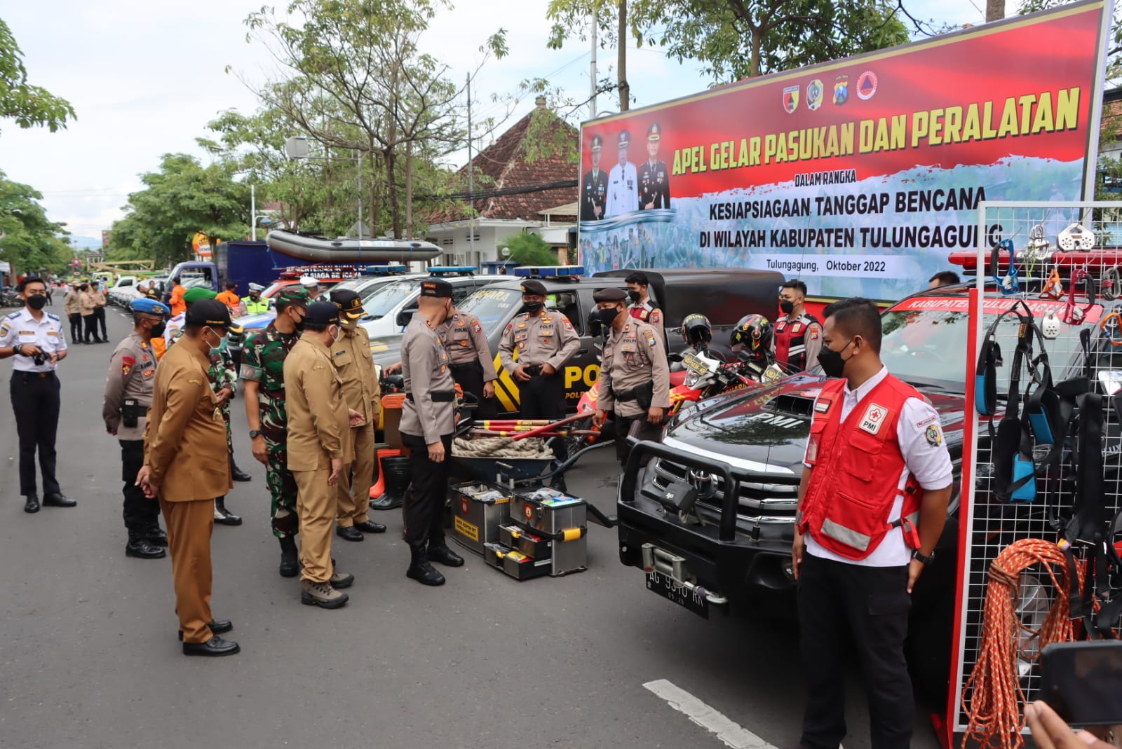 Hal tersebut seperti disampaikan oleh Kapolres Tulungagung AKBP Eko Hartanto Sik Mh usai Apel Gelar Pasukan dan Peralatan Siaga Bencana dalam rangka menghadapi bencana alam di wilayah Kabupaten Tulungagung,Senin (10/10/22).