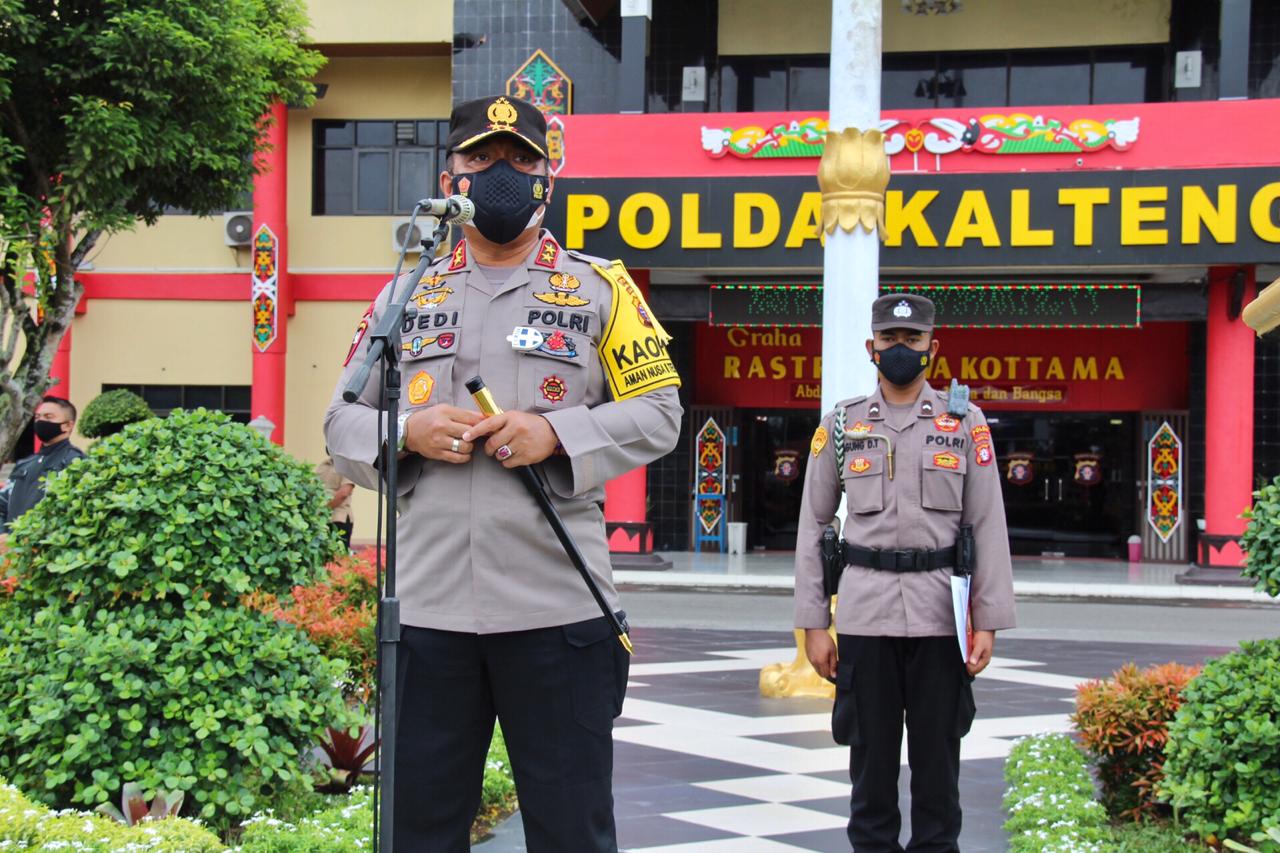 MASPOLIN || Palangka Raya (Kalteng) – Guna mengawal berlangsungnya pelantikan gubernur Kalteng terpilih yang akan berlangsung di Istana Negara, Jakarta pada Selasa (25/05/2021), Polda Kalteng menyiagakan 666 personel di Mako Polda Kalteng.