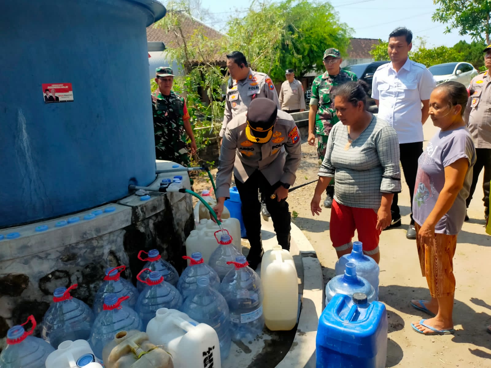 Kembali, Polres Ngawi Polda Jatim bersama TNI dan Pemkab Ngawi dengan instansi terkait, memberikan bantuan berupa air bersih untuk masyarakat Dusun Ngrowo Desa Cantel yang terdampak kekeringan di musim kemarau ini, pada Senin (25/09/23)