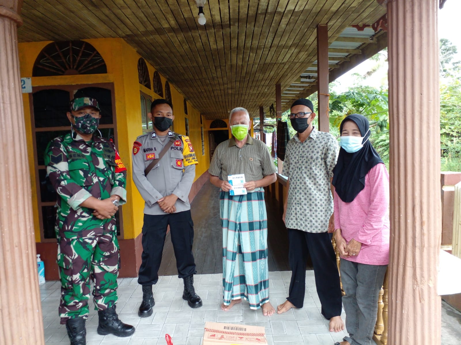 Babinsa Ramil 01/Sambas Serma Seno Mengatakan,Adapun Nama warga yang melaksanakan Isoman yaitu Hj.Dahlia (61) dan Bpk Aji Sucipto (69) serta Sembako yang di bagikan berupa, Beras 10kg, Minyak goreng 1 liter, Gula pasir 1 kg, Teh 1 kotak, Susu kental manis 2 kaleng, Sarden 2 kaleng, Energen 1 kotak serta tambahan Vitamin B complit 1 papan