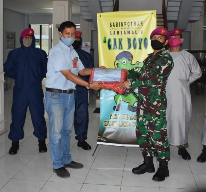 Sebanyak 20 Set APB dan juga sarung tangan diserahkan oleh salah satu perwakilan dari Alumni SMAN I Gresik Bapak Aslam Halim yang diterima oleh Danyonmarhanlan V Letkol Marinir Andi Ichsan, S.H., M.M.