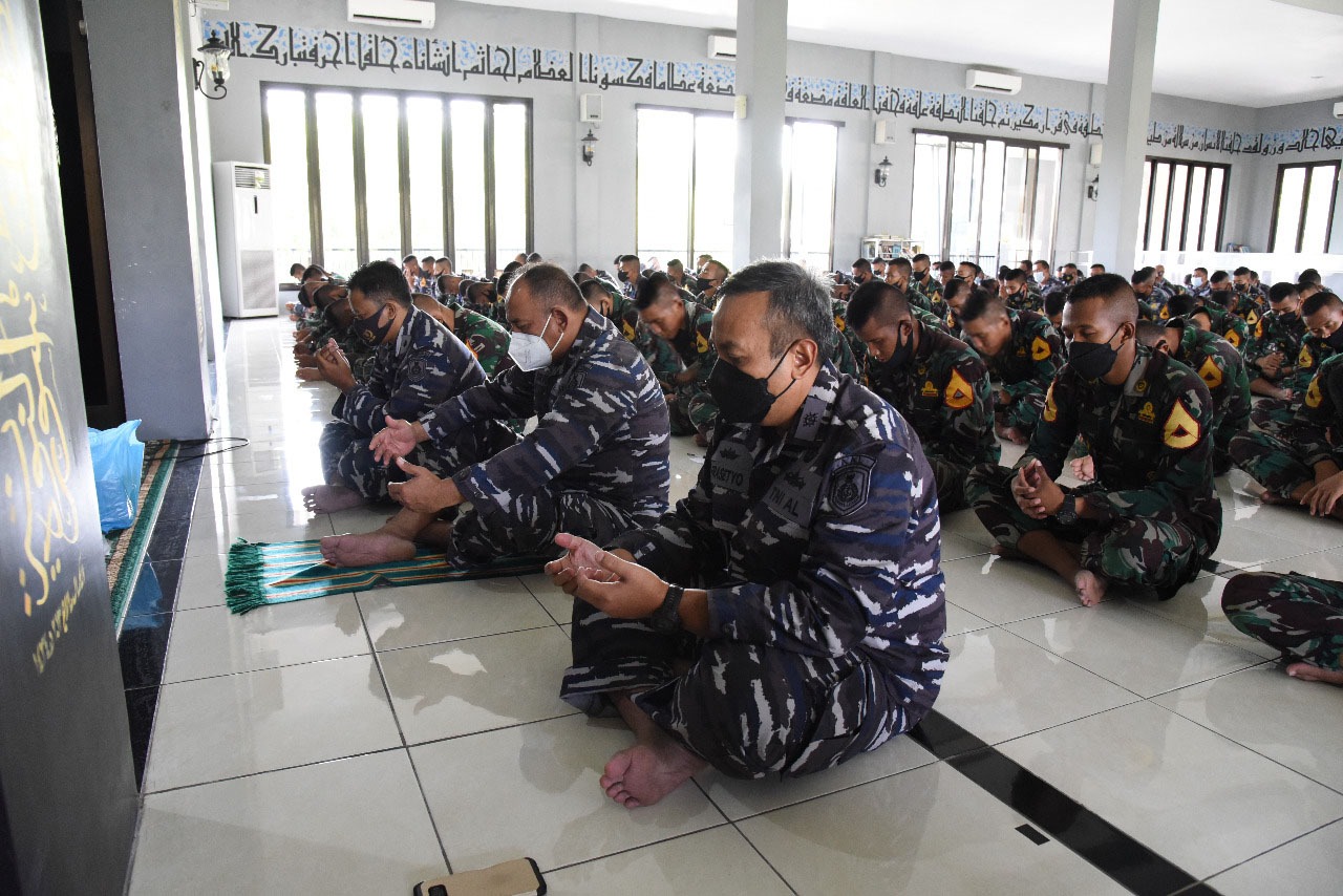 Prosesi doa bersama di Masjid Nurul Bahri dipimpin Perwira Rohani Islam AAL, Kapten Laut (KH) Andi Irawan, S.Ag., diawali dengan Sholat Dhuha dan Sholat Hajat, kemudian dilanjutkan sholawat, pembacaan Surah Yasin dan ditutup dengan doa.