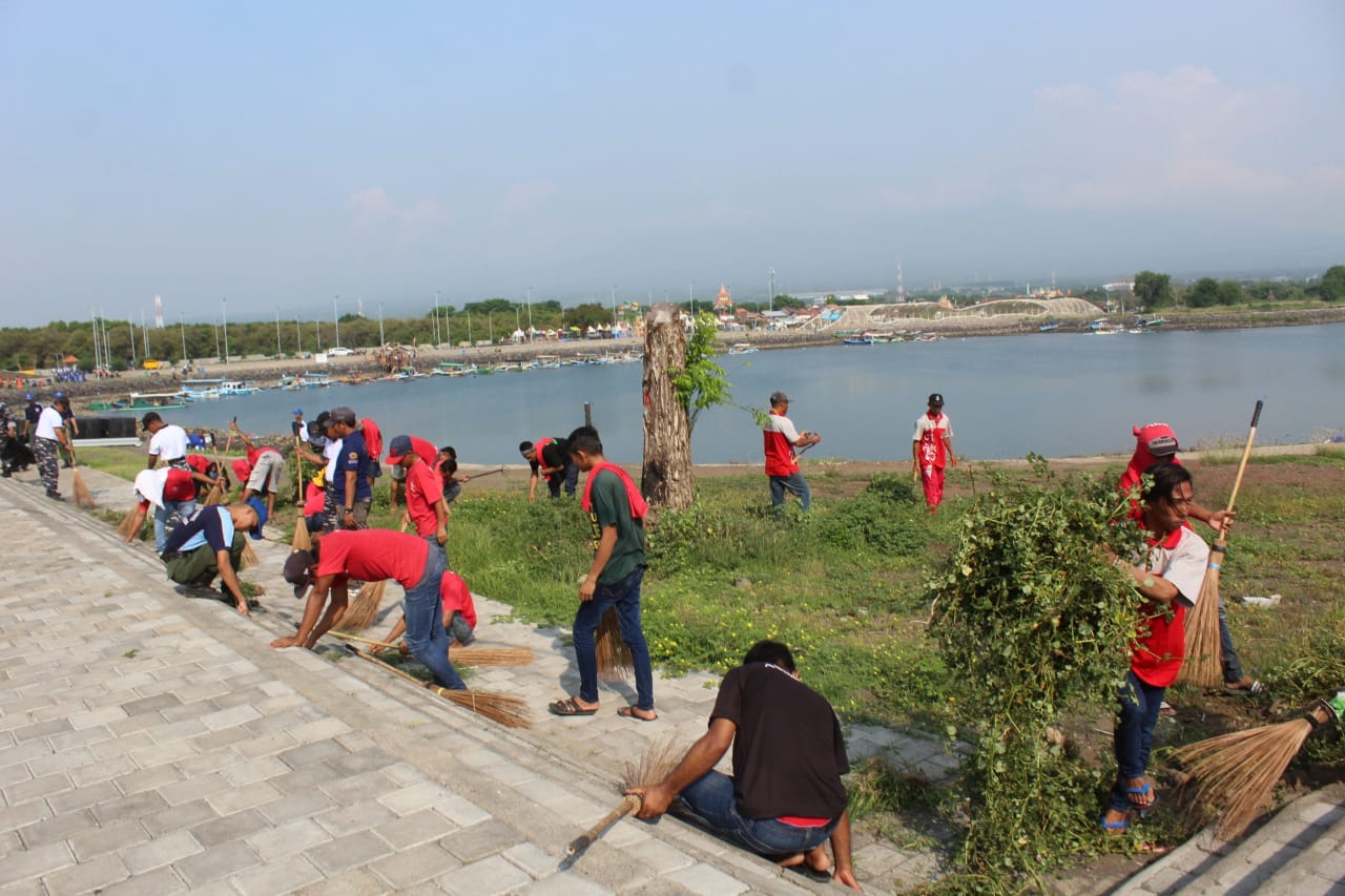 Banyuwangi,Maspolin.id – Jelang Internasional Dragon Boat Banyuwangi Championship (IDBBC) 2020, Pangkalan TNI Angkatan Laut (Lanal) Banyuwangi, Lantamal V, Koarmada II ajak instansi terkait dan elemen masyarakat Banyuwangi melaksanakan aksi bersih-bersih pantai di pantai Marina Boom Banyuwangi. Kamis (30/1).