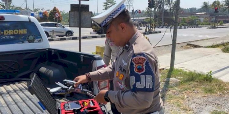 Salatiga – Maspolin.id|| Direktorat Lalu Lintas Polda Jawa Tengah bersama Satuan Lalu Lintas Polres Salatiga melakukan terobosan kreatif dengan melakukan penindakan terhadap pelanggaran lalu lintas melalui Etle Drone di Exit Toll Salatiga, Selasa (12/9).