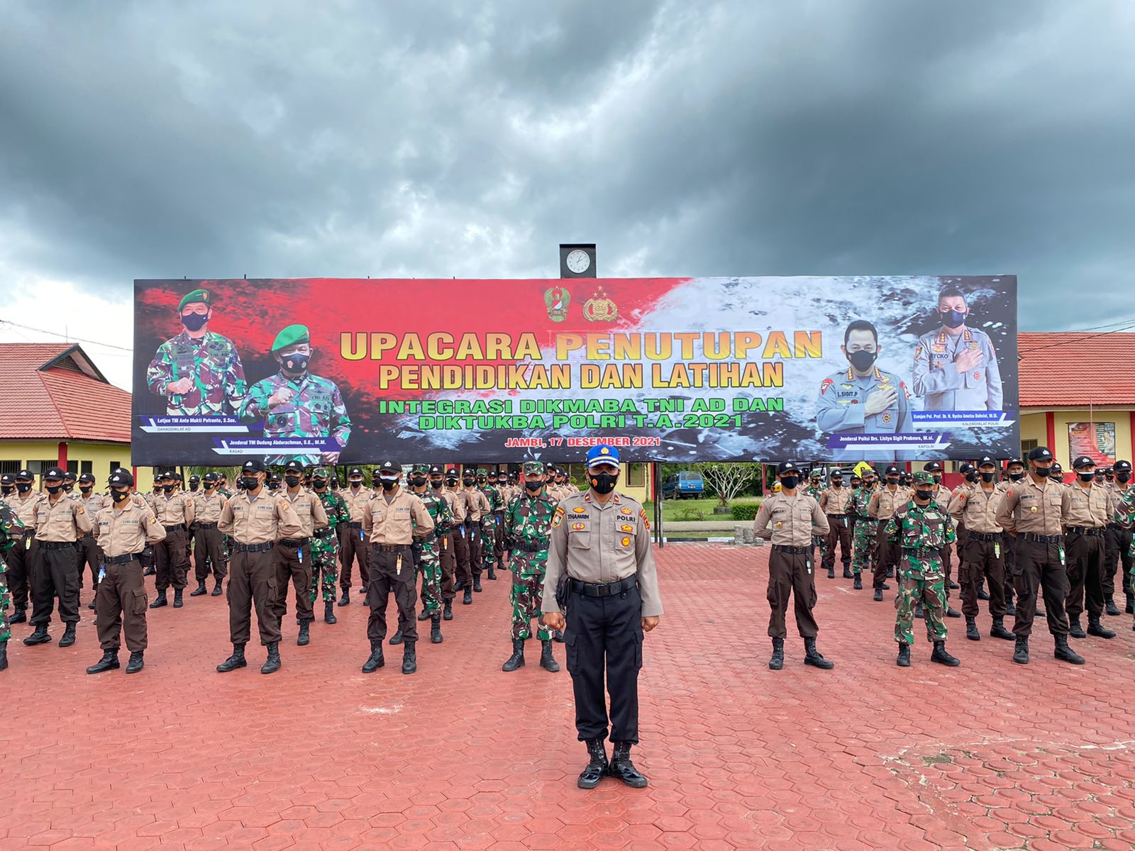 Kepala SPN Polda Jambi Kombes Pol Noveriko A. Siregar, SIk didampingi Kasdim Letkol INF Tri Nugroho SPd bertindak sebagai inspektur upacara pada penutupan Diklat Integrasi Dikmaba TNI AD dan Diktukba Polri TA 2021 tersebut.