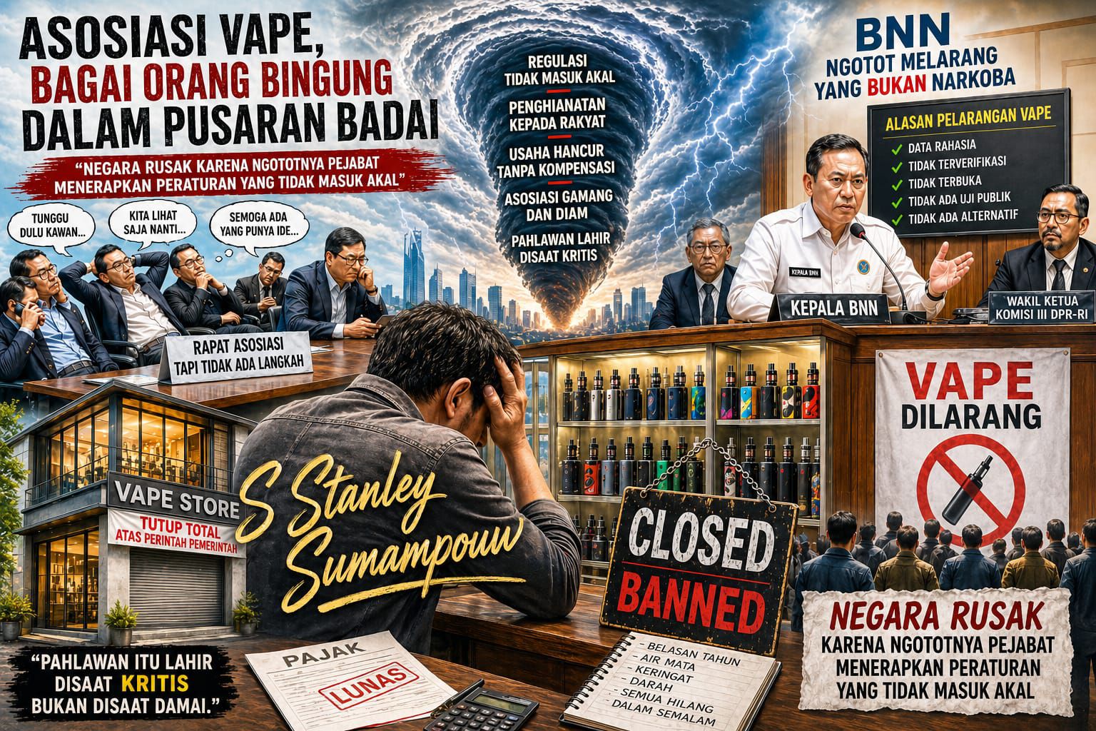 Jika memang vape dianggap berbahaya, maka regulasi ketat adalah jalan tengah yang masuk akal: pembatasan usia, standar produksi, pengawasan distribusi, hingga edukasi publik. Bukan pelarangan total yang mematikan ekosistem usaha secara brutal.