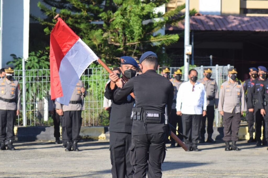 Keberangkatan para personil Brimob ditandai dengan apel Pemberangkatan yang dipimpin langsung oleh Kapolda Sulbar Irjen Pol Eko Budi Sampurno di Bandar Udara tampa padang Mamuju, Senin (27/09/21).