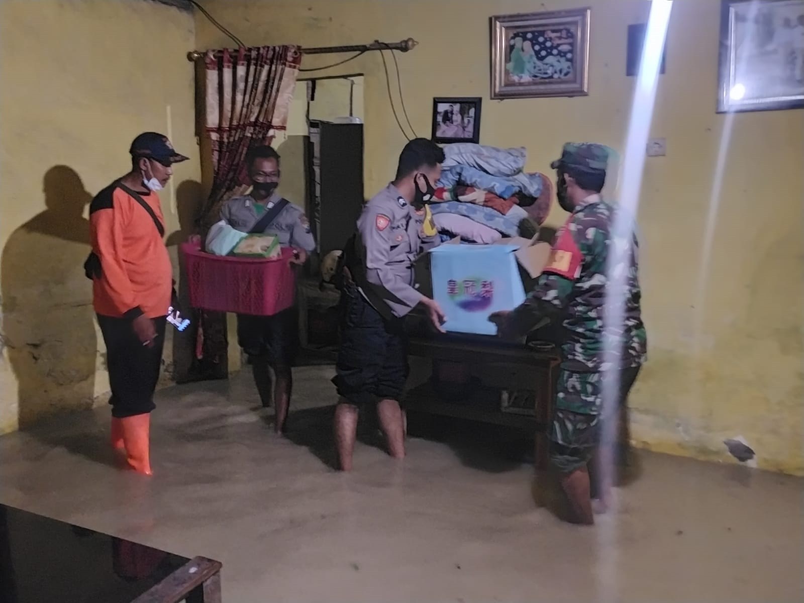 “Dalam evakuasi itu Bripka Riski Dan Briptu Alfan langsung mendatangi tempat terjadinya banjir Sedikitnya Enam Rumah Warga yang berada di Dusun Talunbrak Dawarblandong Terendam air, adapun ketinggian air mencapai kurang lebih 30 s/d 50 cm, daerah ini merupakan daerah tepian Sungai Lamong,” Tambah IPDA Umam