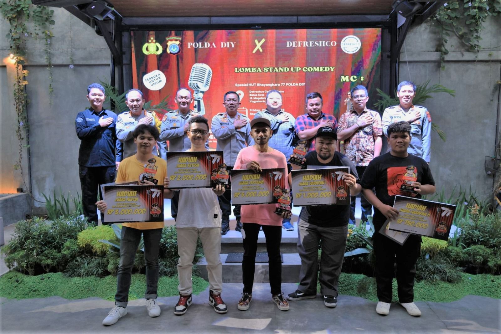 YOGYAKARTA – Maspolin.id|| Semakin dekat dengan Hari Bhayangkara ke-77, Polda DIY menampilkan kelima finalis Lomba stand up comedy undang gelak tawa penonton dan pengunjung di Defreshco Coffe Sleman, (Jumat, 23 Juni 2023).