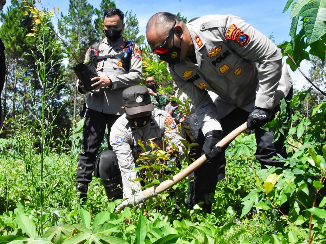 Polres Trenggalek – Maspolin.id|| Kapolres Trenggalek AKBP Dwiasi Wiyatputera, S.H., S.I.K., M.H. bersama dengan Dandim 0806 Letkol Arh Uun Samson Sugiharto, S.I.P., M.I.Pol kompak melakukan penanaman pohon di Desa Jombok Kecamatan Pule, Kabupaten Trenggalek. Senin, (13/12).