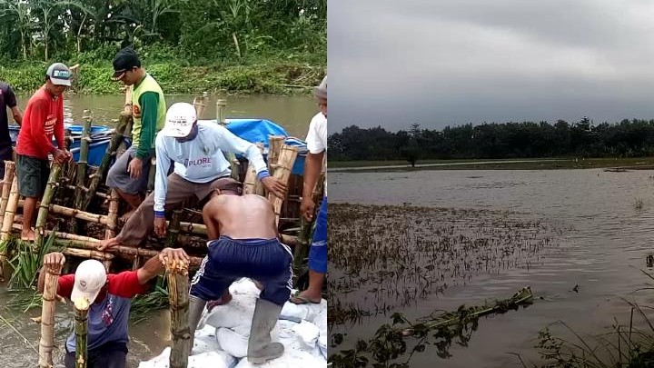 Tanggul yang jebol, dan merendam empat hektare sawah beserta tanaman padi siap panen itu, lebarnya sekitar sembilan meter. “Dampaknya, akibat tanggul jebol air merendam tanaman padi yang siap panen seluas 4 hektar ini,” kata Poniman, Kepala Dusun Juwet, Kamis (11/4) siang.