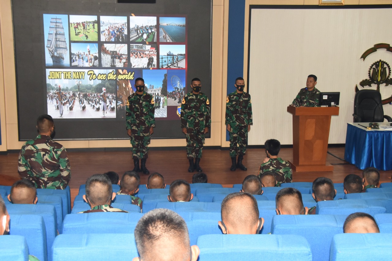 MASPOLIN || Surabaya – Memasuki hari keempat masa orientasi, 130 Taruna-Taruni Akademi Angkatan Laut (AAL) Tingkat I Angkatan ke-69 tahun 2021 dikenalkan mengenai Struktur Organisasi AAL dan Resimen AAL yang disampaikan secara langsung oleh Komandan Resimen AAL Kolonel Laut (P) Arief Budiman, M. Tr.Opsla. di auditorium Mandalika, Komplek Ki Hadjar Dewantara, AAL, Selasa (2/2).