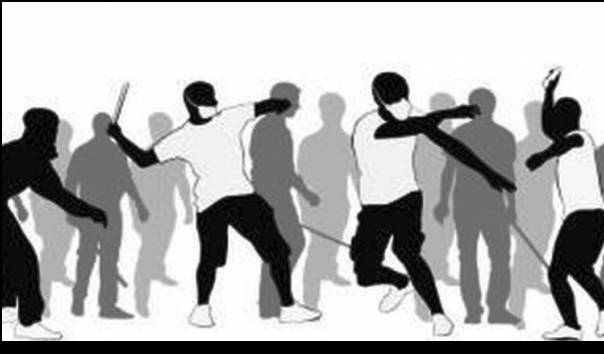 Dalam video tersebut terlihat puluhan orang saling menyerang dengan melemparkan batu dan terdengar suara petasan serta kembang api.
