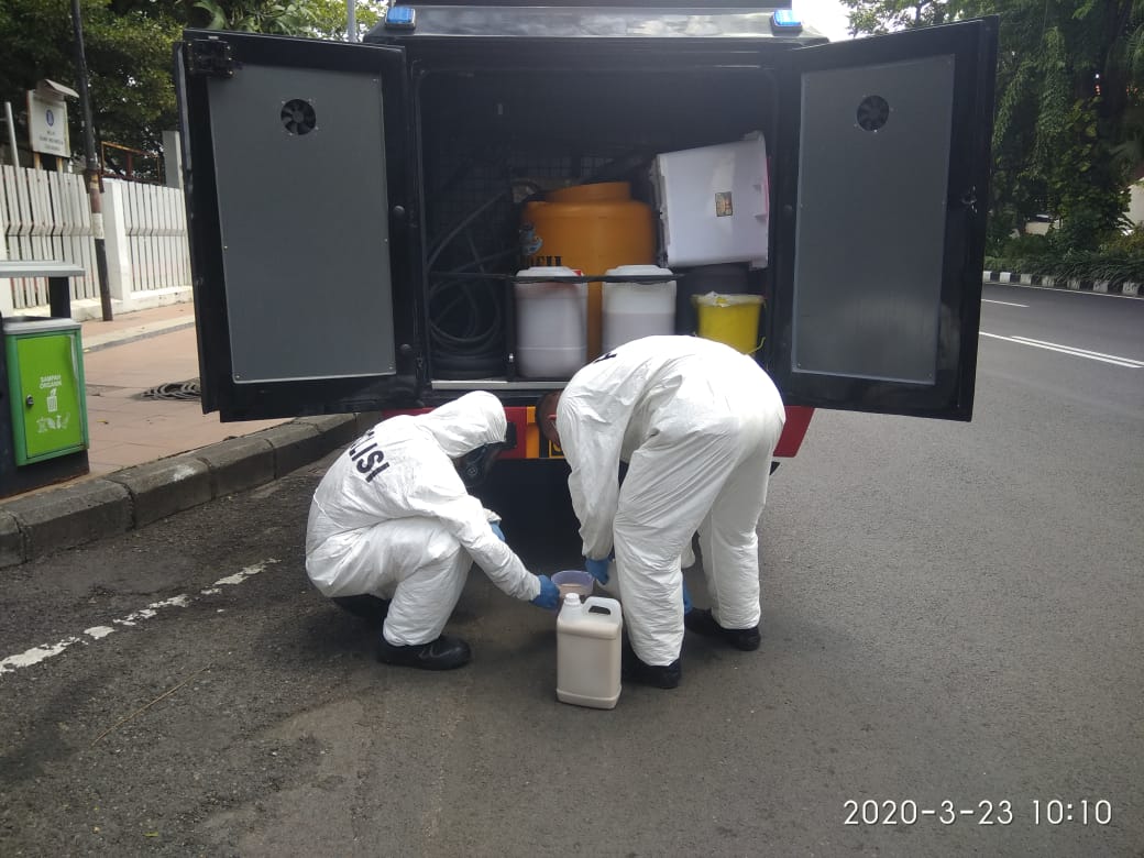 Team KBR juga melakukan penyemprotan desinfektan rumah dinas Sekda Propinsi Jawa Timur yang terletak di Jl. Musi No. 4 A Surabaya.