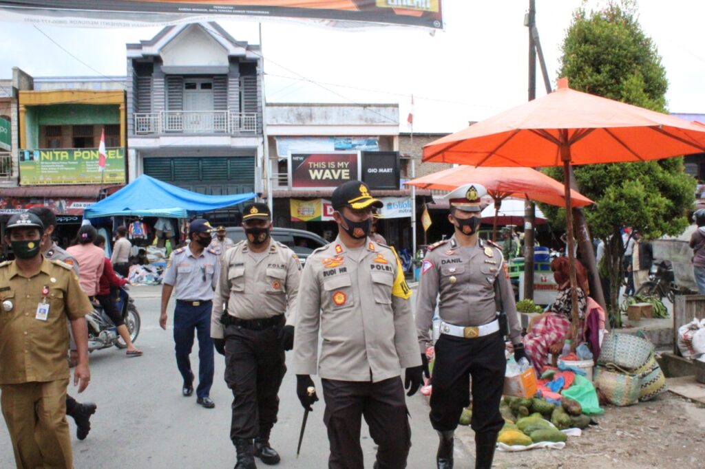 TERAPKAN PROTOKOL KESEHATAN POLRES HUMBAHAS DAN KODIM SERTA PEMKAB MELAKUKAN PENDISIPLINAN DI PASAR TRADISIONAL LINTONG NIHUTA