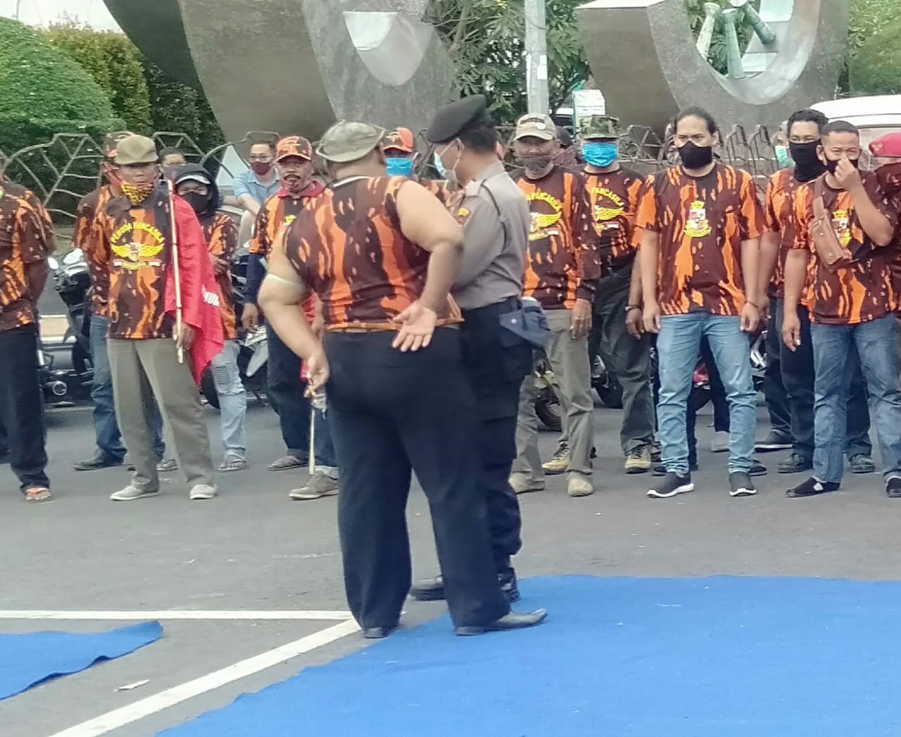 MASPOLIN.ID | KUDUS – Teriakan dan yel-yel Pancasila Abadi menggema di Alun-alun Simpang Tujuh kota Kudus dari sejumlah ormas, LSM dan tokoh masyarakat yang melakukan aksi dan doa bersama, kemudian dilanjutkan orasi berkait penolakan pembahasan Rencana Undang-Undang Haluan Ideologi Pancasila (RUU HIP), Jumat (10/7/2020).