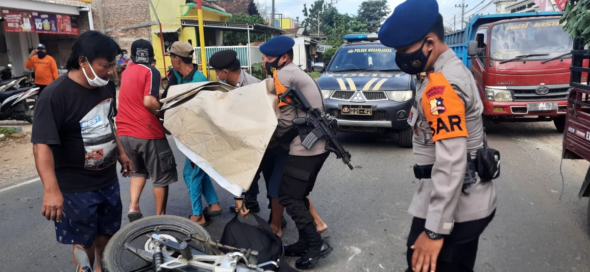 MASPOLIN || Pati(Jawa Tengah) – Telah terjadi kecelakaan lalulintas di Jl. Raya Pati Tayu Turut Desa Bumi Ayu Kecamatan Wedarijaksa, personel Resimen 1 Pasukan Pelopor BKO Polda Jateng melaksanakan pengamanan dan pertolongan terhadap korban lakalantas, Selasa (15/06/2021).
