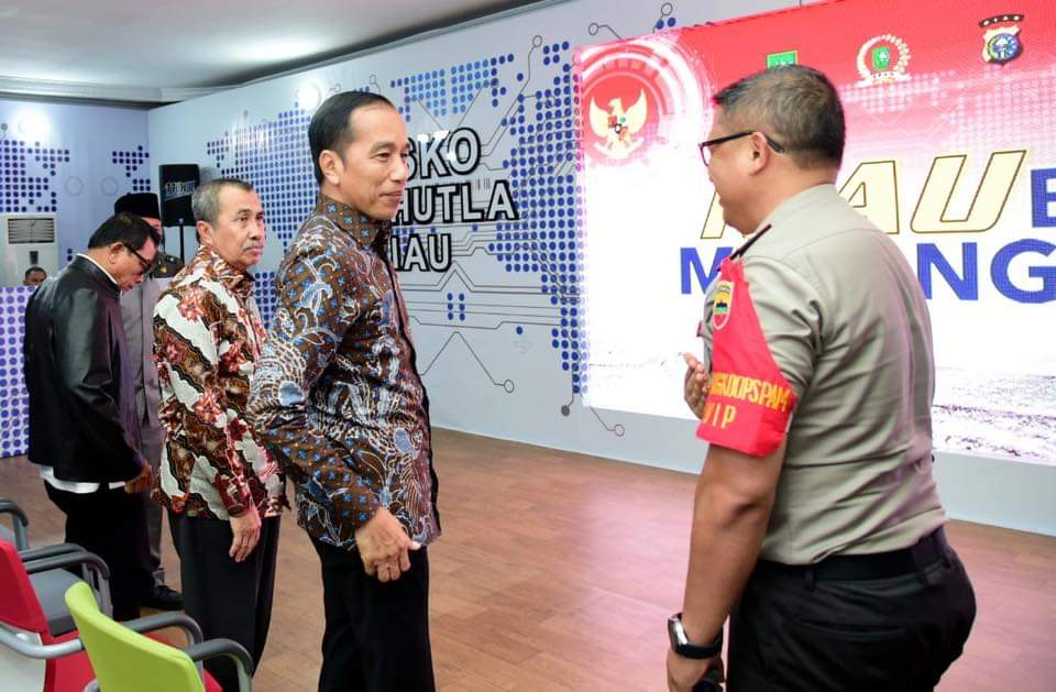 Riau,Maspolin.id – Setibanya di Pangkalan TNI AU Roesmin Nurjadin, Kota Pekanbaru, Provinsi Riau, Kamis, 20 Februari 2020, Presiden Joko Widodo langsung menuju sebuah ruangan yang dijadikan posko untuk penanganan kebakaran hutan dan lahan (karhutla) di Provinsi Riau.