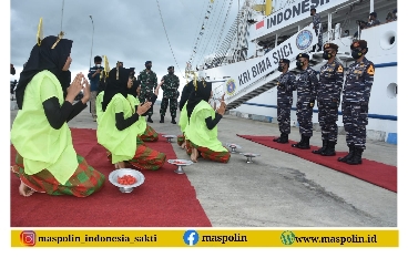MASPOLIN || AAL, KJK 2021 – Setelah menempuh pelayaran sejauh 782.74 NM dari Morotai, Maluku Utara, Taruna Akademi Angkatan Laut (AAL) Tingkat III Angkatan 68 yang tergabung dalam Satuan Latihan Kartika Jala Krida (KJK) tahun 2021 yang berlayar keliling Indonesia dengan KRI Bima Suci menyelesaikan Etape ke-6 dan tiba di Dermaga Pos TNI AL Sei Pancang Sebatik, kabupaten Nunukan, Kalimantan Utara, Senin (13/9).